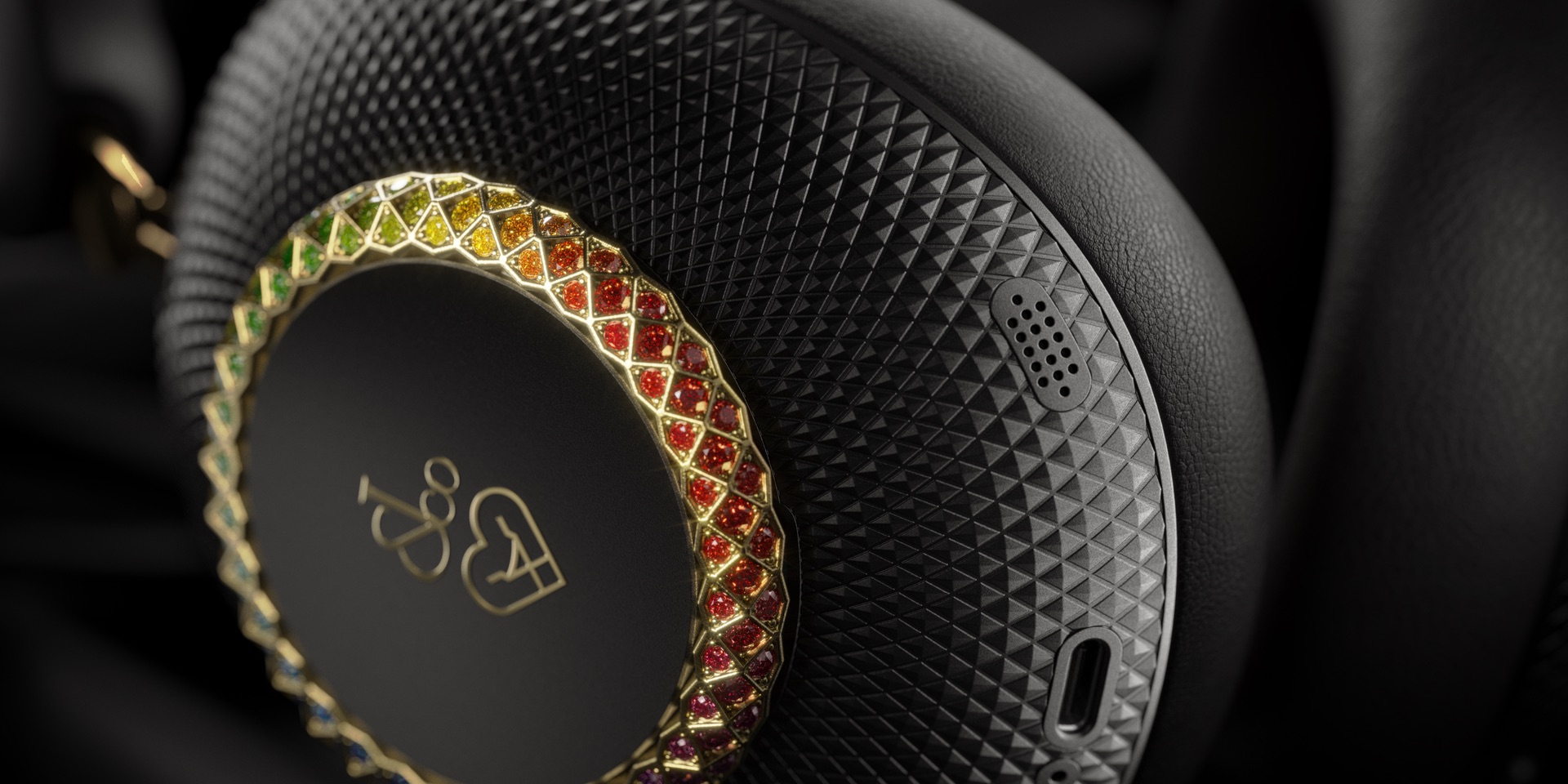 An exquisite fusion of sound and high jewellery, the Noir Rainbow edition features a handcrafted 14K rose gold ring, adorned with 15.97 carats of radiant gemstones. A bold and luminous expression of craftsmanship, reimagined through the art of audio.